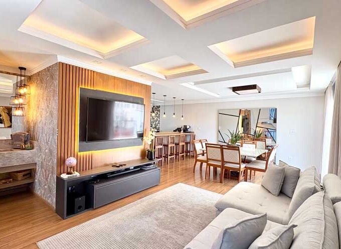Sua fachada, marcada por amplas áreas envidraçadas, permite que a luz natural dance pelos ambientes internos, criando um diálogo constante entre o interior e o exterior.