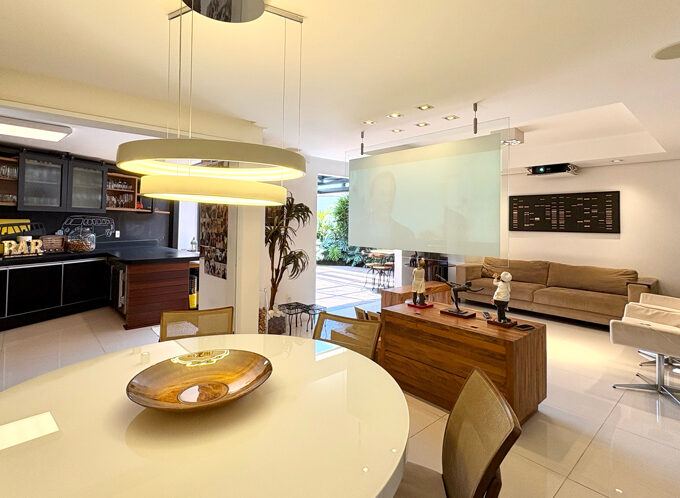 Conta com 1 suíte super aconchegante, banheiro social, sala de estar, sala de jantar, cozinha e área de serviço. Na parte externa temos um lindo jardim, piscina e uma espécie de gazebo com uma cozinha moderna integrada com uma sala e home office.